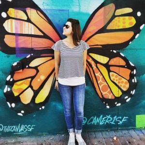 a travel maniac taking adventures with her monkey
