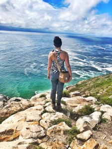 a travel maniac taking adventures with her monkey